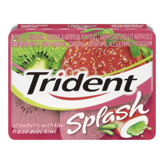 Trident Splash Strawberry Kiwi 9 Piece Gum Singles - 10 Pack