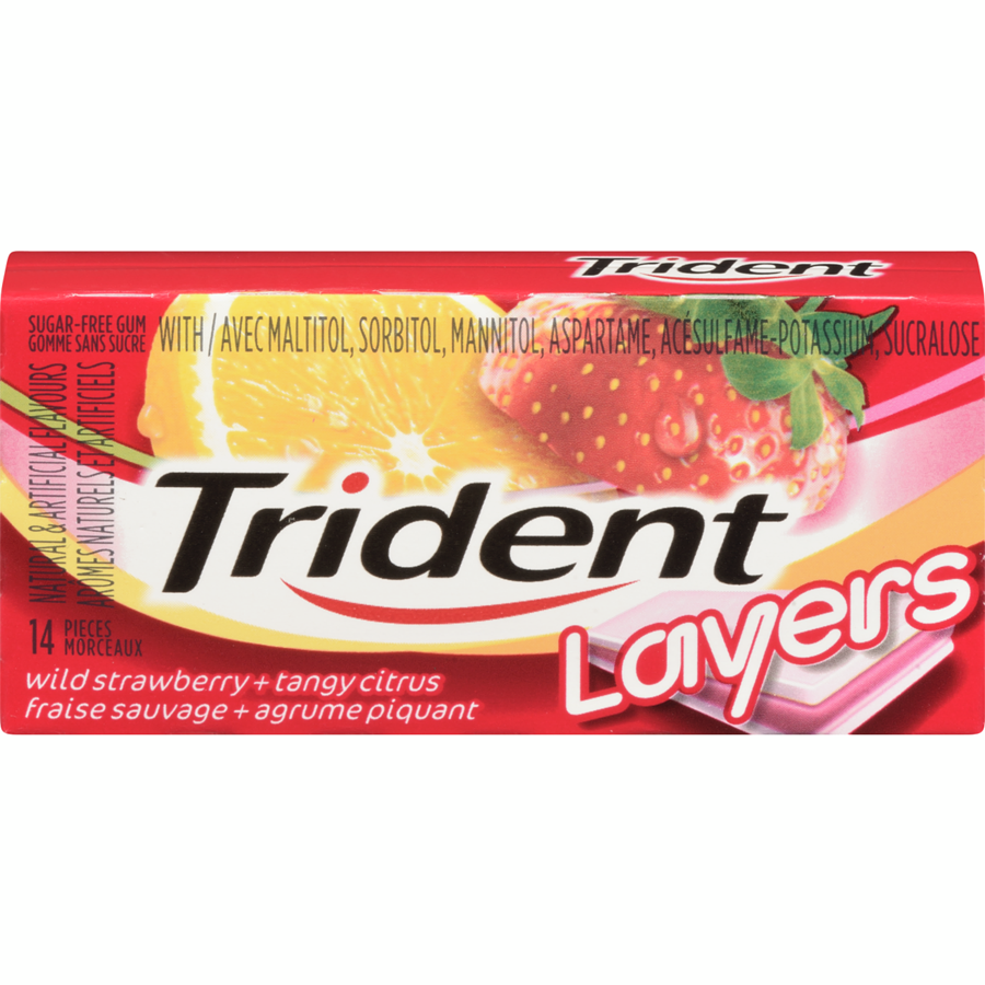 Trident Layers Wild Strawberry Tangy Citrus 14 Piece Gum Singles - 12 Pack