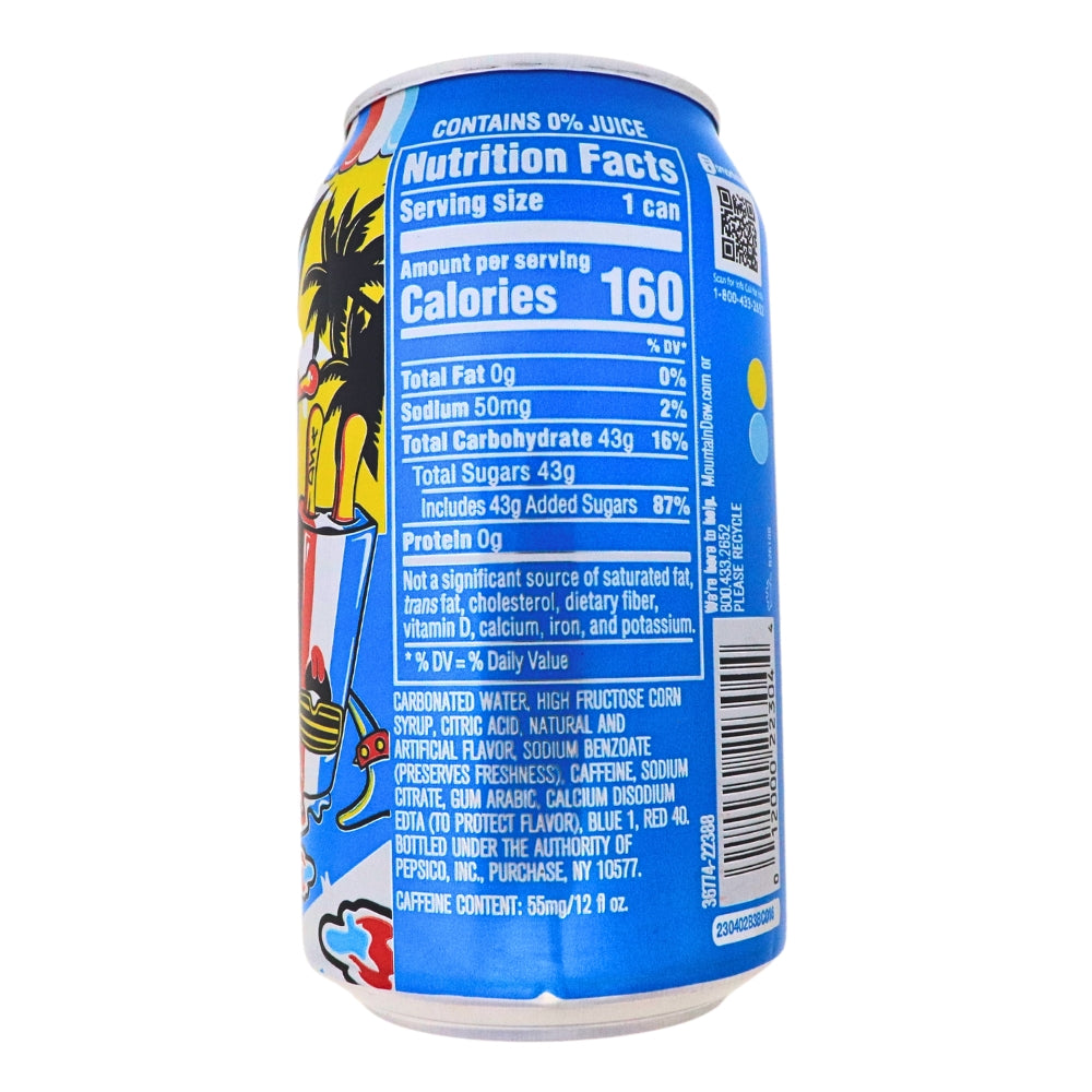 Made with the cool and crisp base of citrusy goodness with additional fruit flavours of cherry, lemon and raspberries. This Mountain Dew is reminiscent of one of those red, white and blue popsicles.